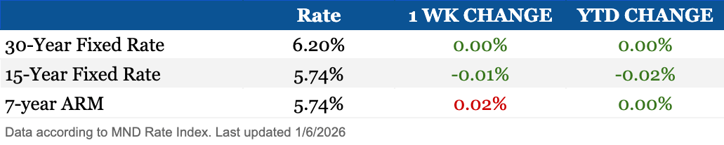 Mortgage rates barely moved this week, holding near two-month lows as the market waited for new economic data that could finally push rates up or down. Looking back on the full year, rates dropped nearly 1% in 2025, falling from 7.1% to 6.2% by the end of the year.