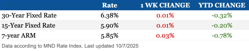 Mortgage rates held steady this week with traders focused on the government shutdown and delayed jobs report, keeping pricing largely unchanged while awaiting clearer economic signals.